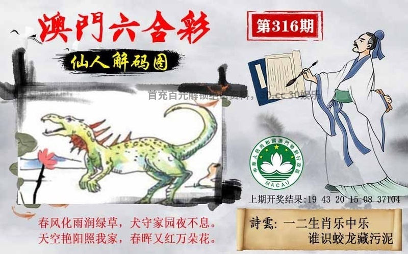 | 313期:双【龙马狗虎】单【蛇兔鸡牛】开:龙38准 |
